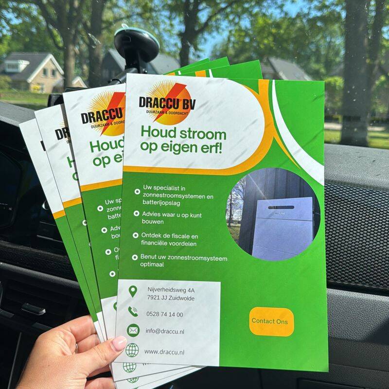 Team Draccu on tour🚘 Met onze splinternieuwe flyers in de hand!📄⚡️